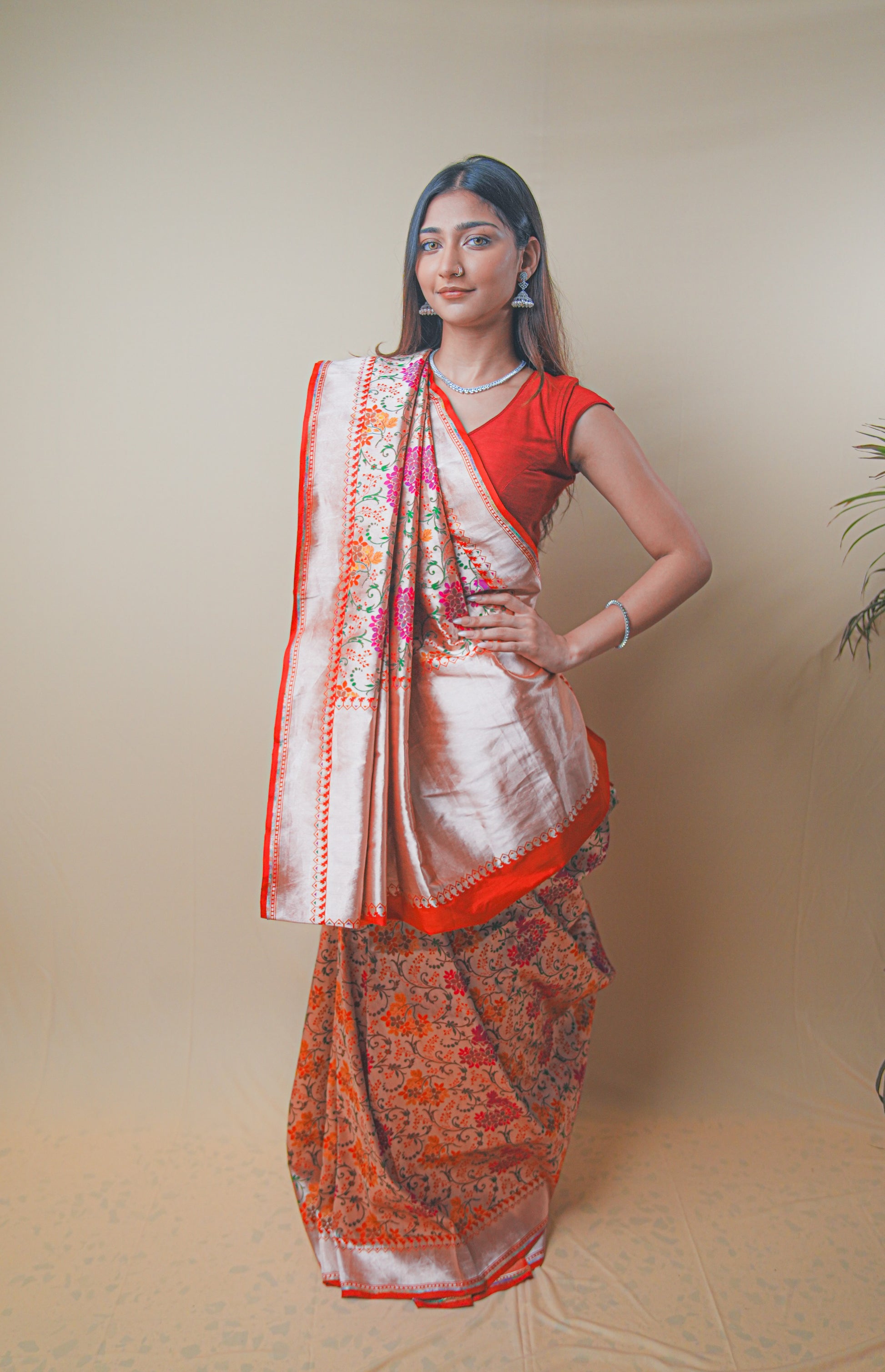 Designer Katan Jari Silk Saree with Timeless Meenakari Embroidery