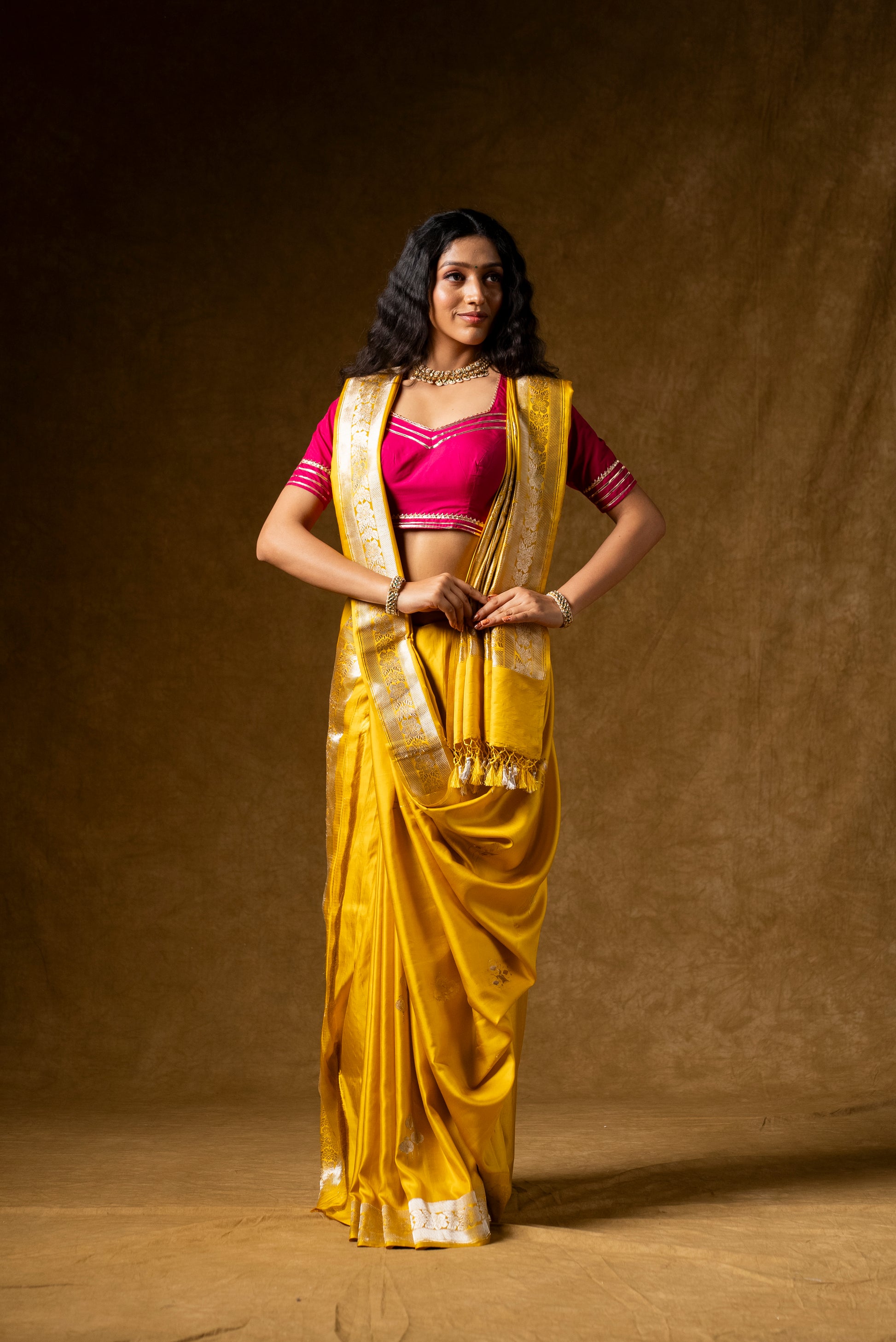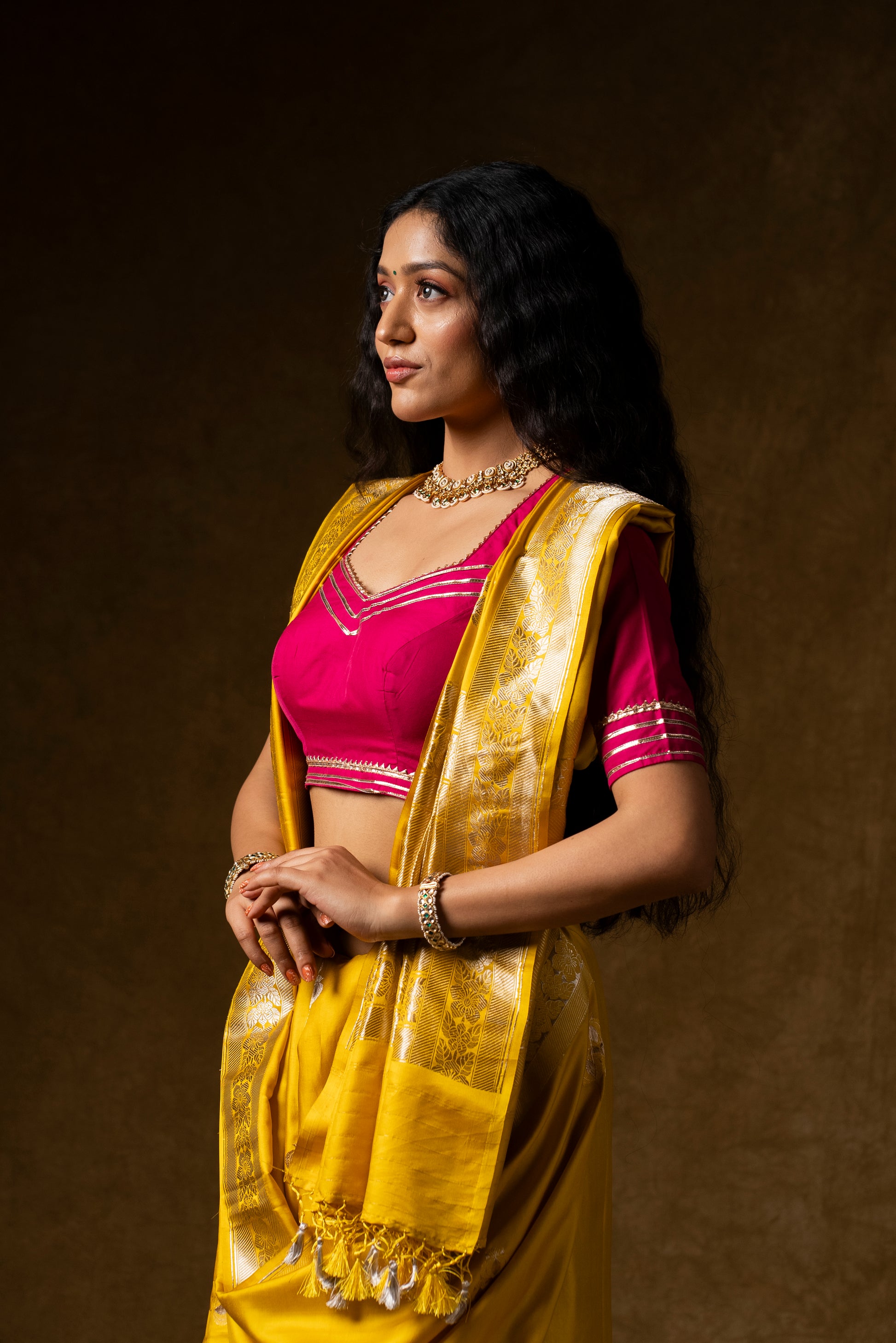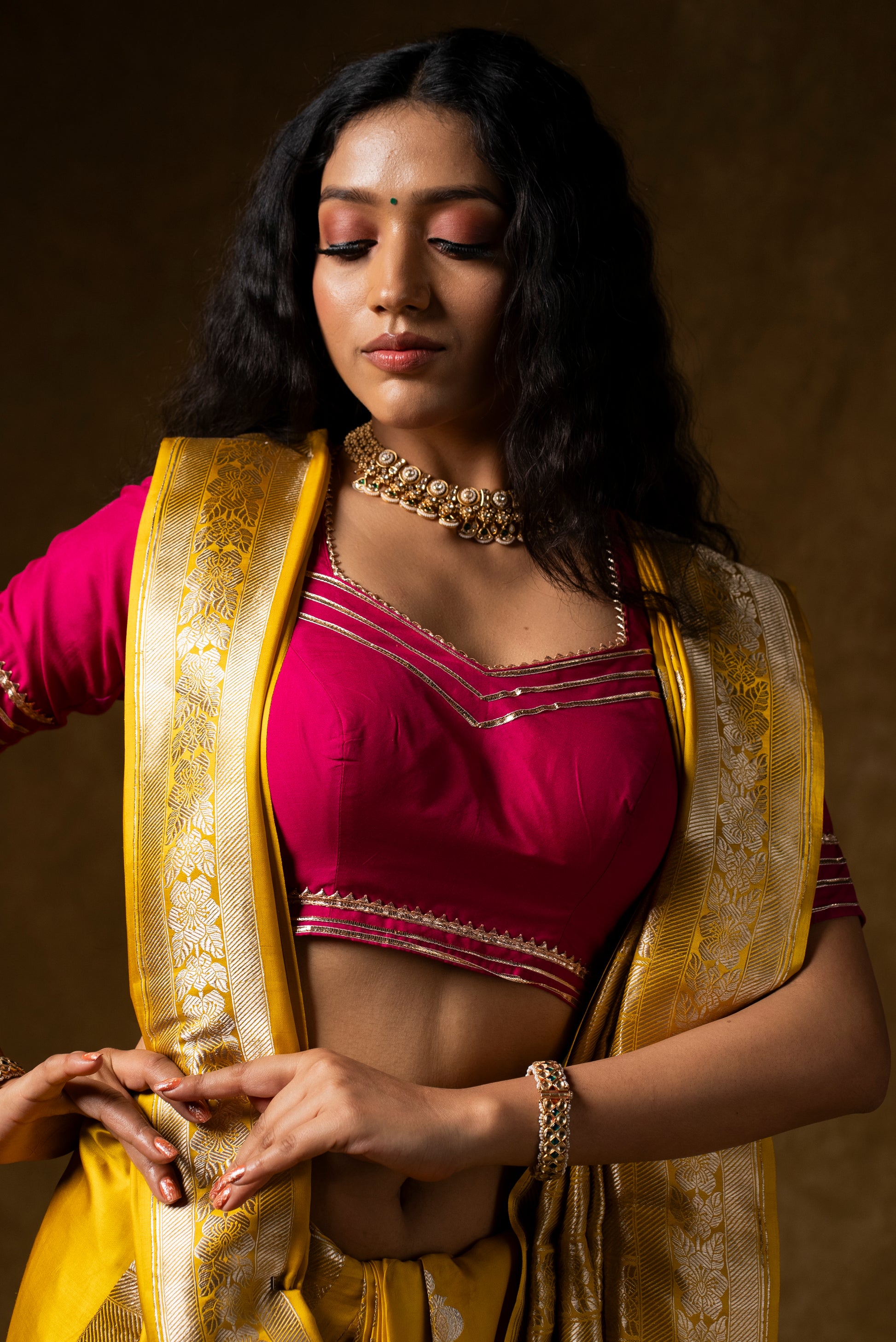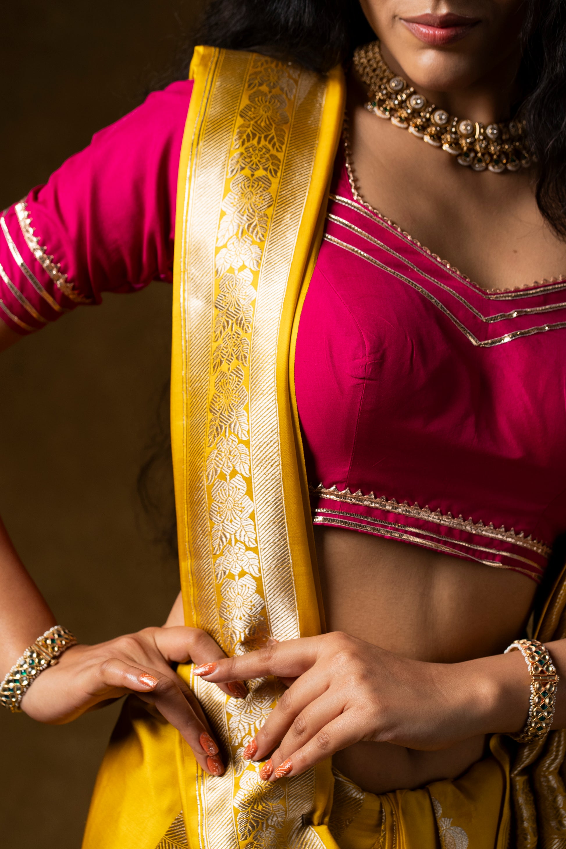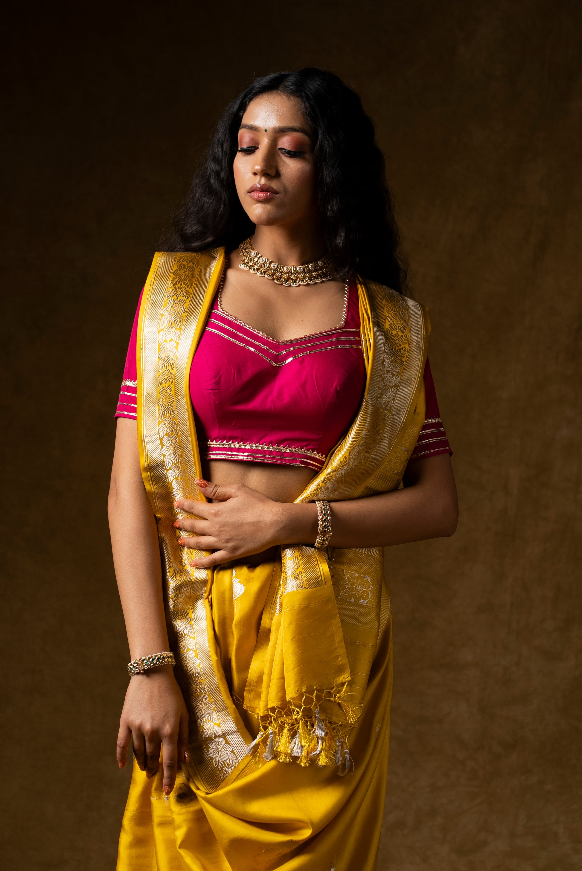 This is a Standard size guide for the basic body measurements. There may be some variations according to the category you are choosing. We do request you to refer the measurements displayed or contact our Customer care at info@gaurisaree.com.