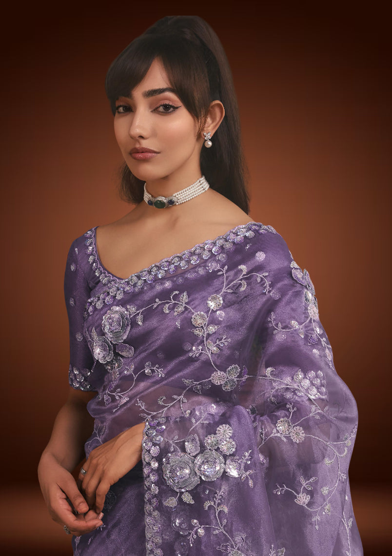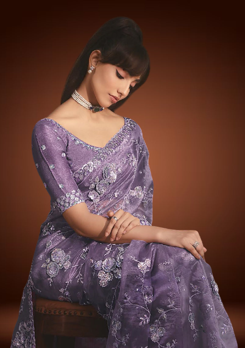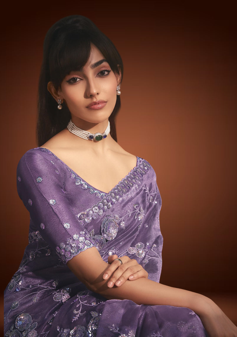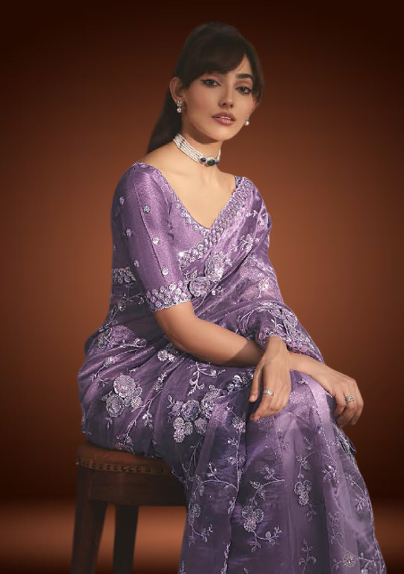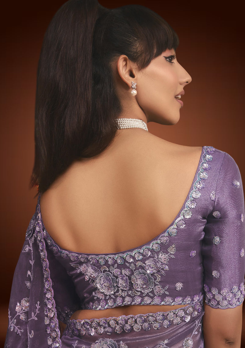 Purple Tissue Organza Saree with Sequin & Resham Work