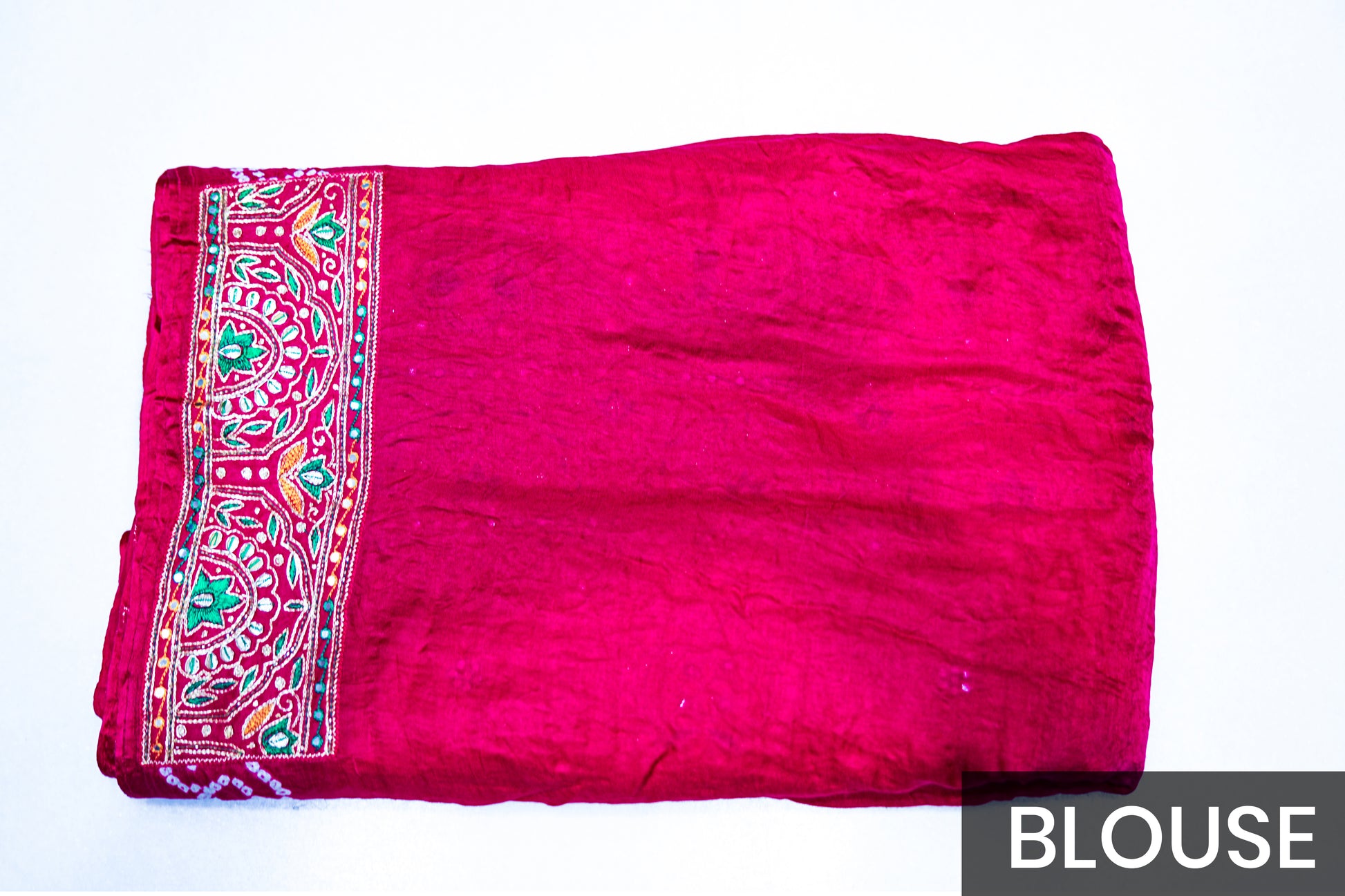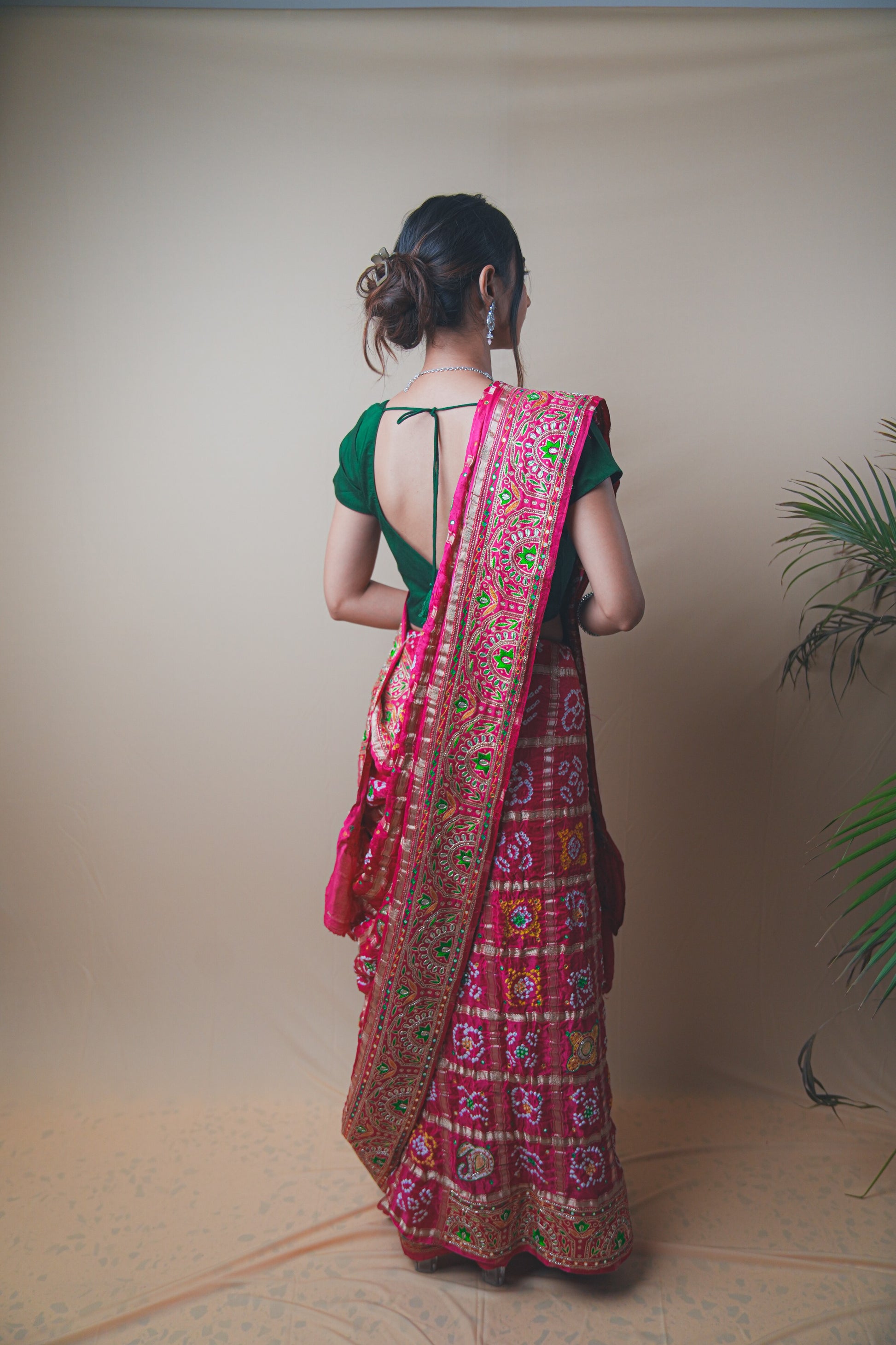 Rani Pink Gaji Silk Saree with Intricate Ghar Chola Work