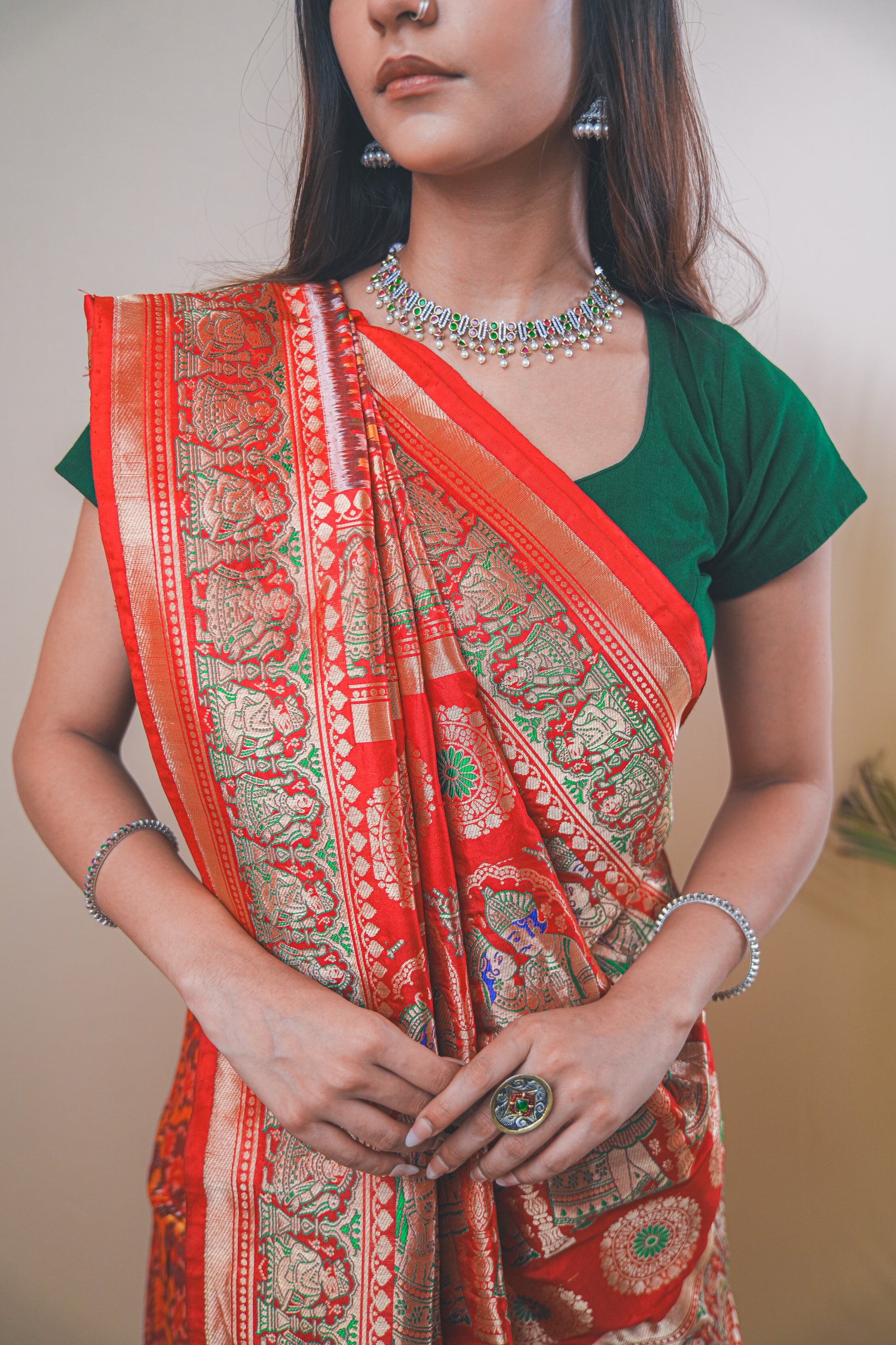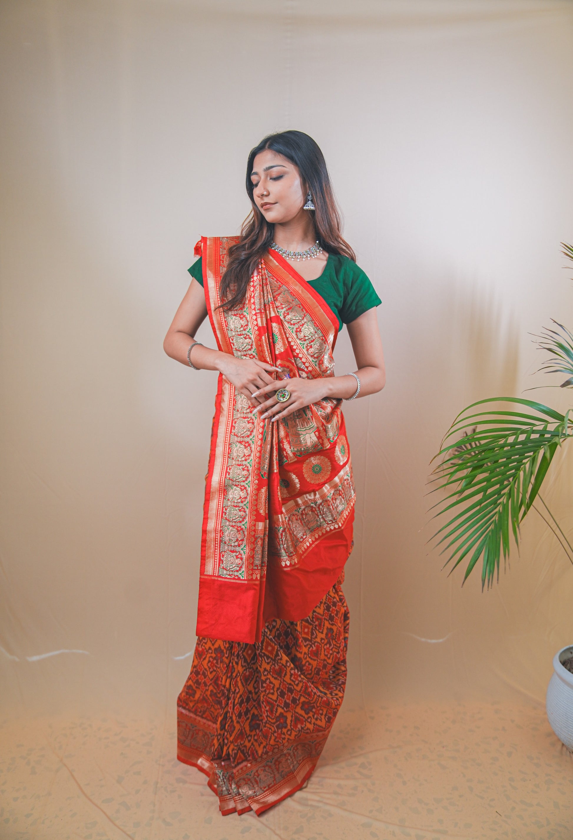 Rich Ikkat Patola Silk Saree with Classic Amdavadi Border Detailing