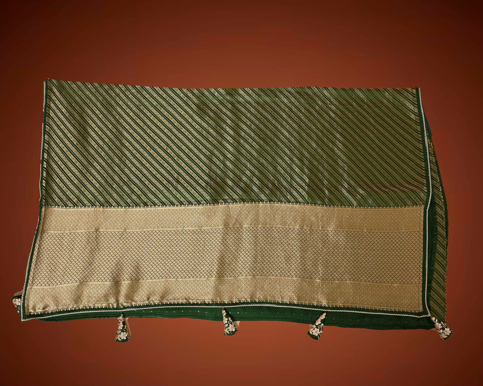 Royal Bottle Green Brocade Saree with Gota Patti Ready Blouse